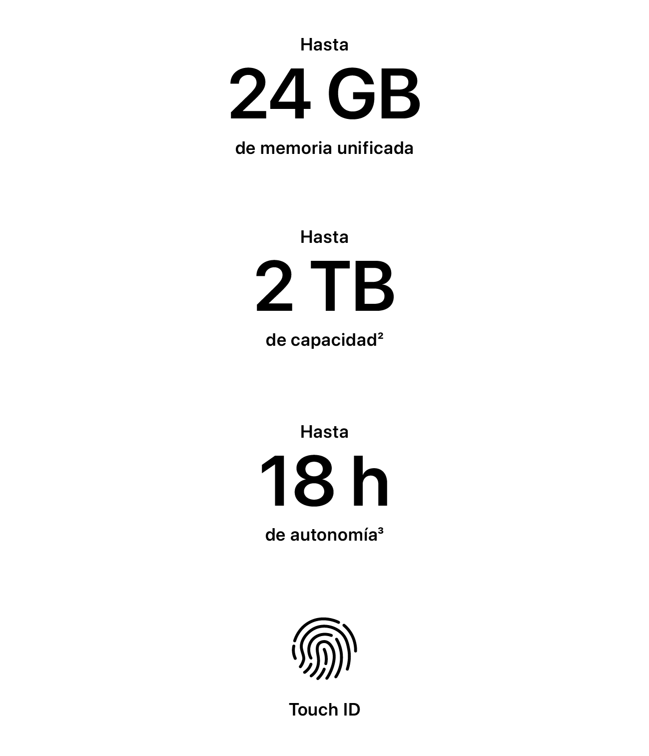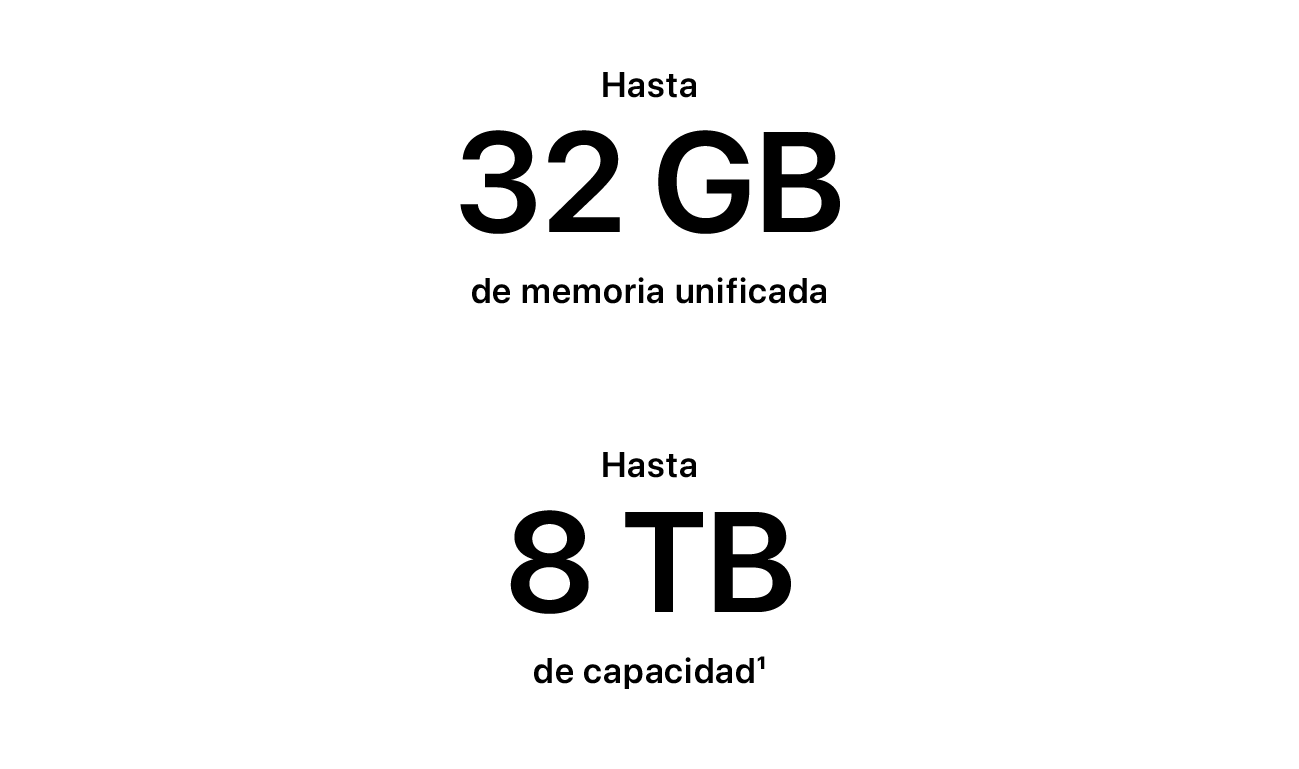 - La duración de la batería varía en función de la configuración y el uso. Más información en apple.com/es/batteries.