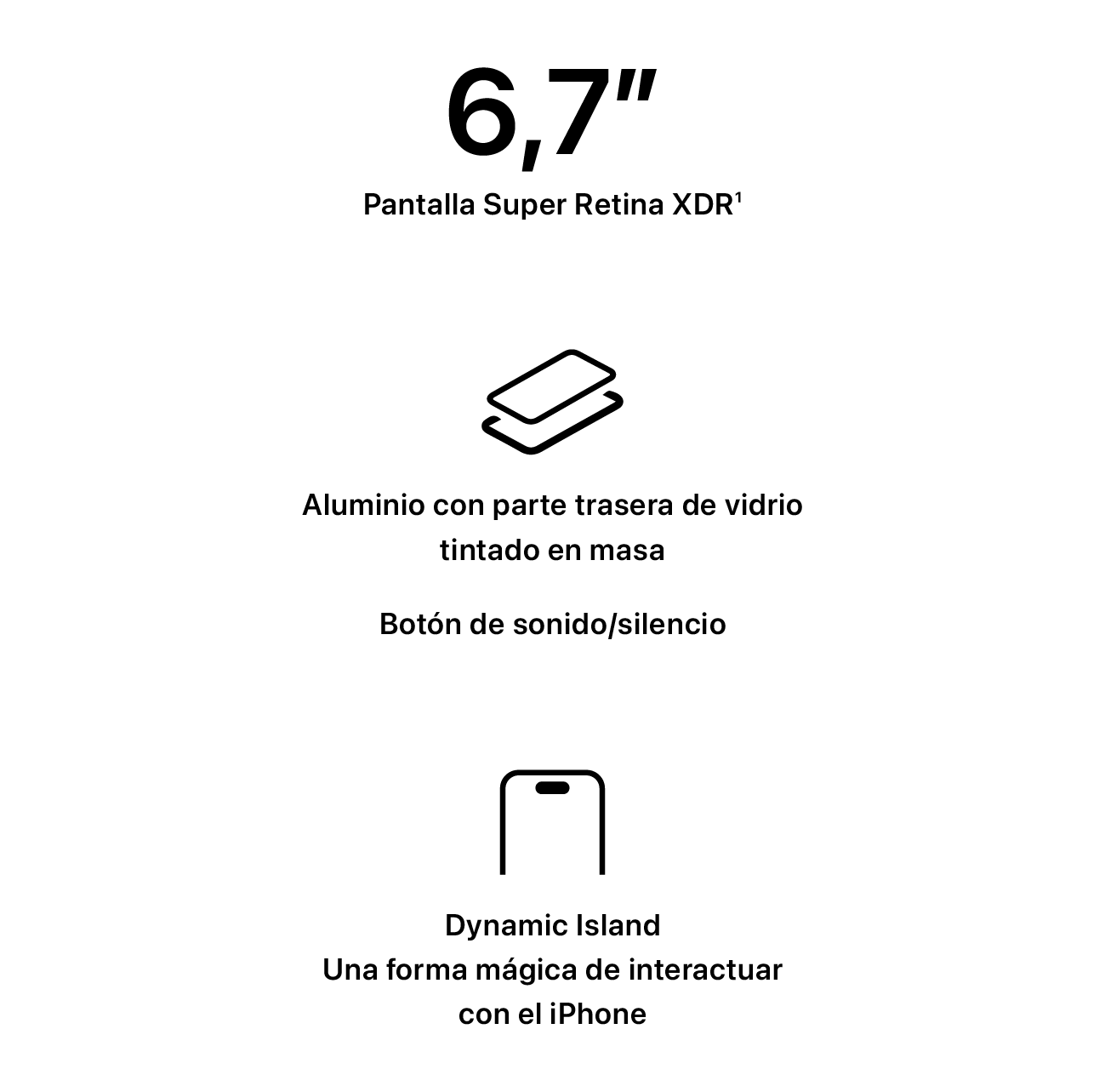El iPhone 15 Plus incluye la Dynamic Island, un diseño con aluminio y vidrio tintado en masa, una cámara principal de 48 Mpx y USB C.