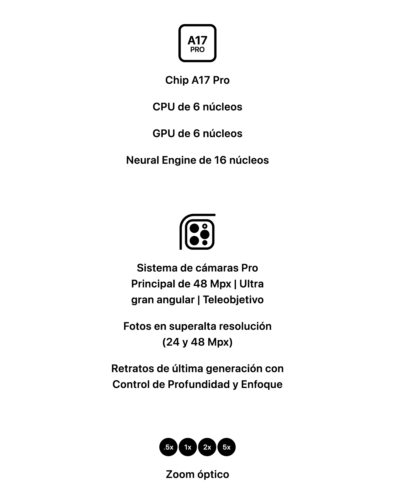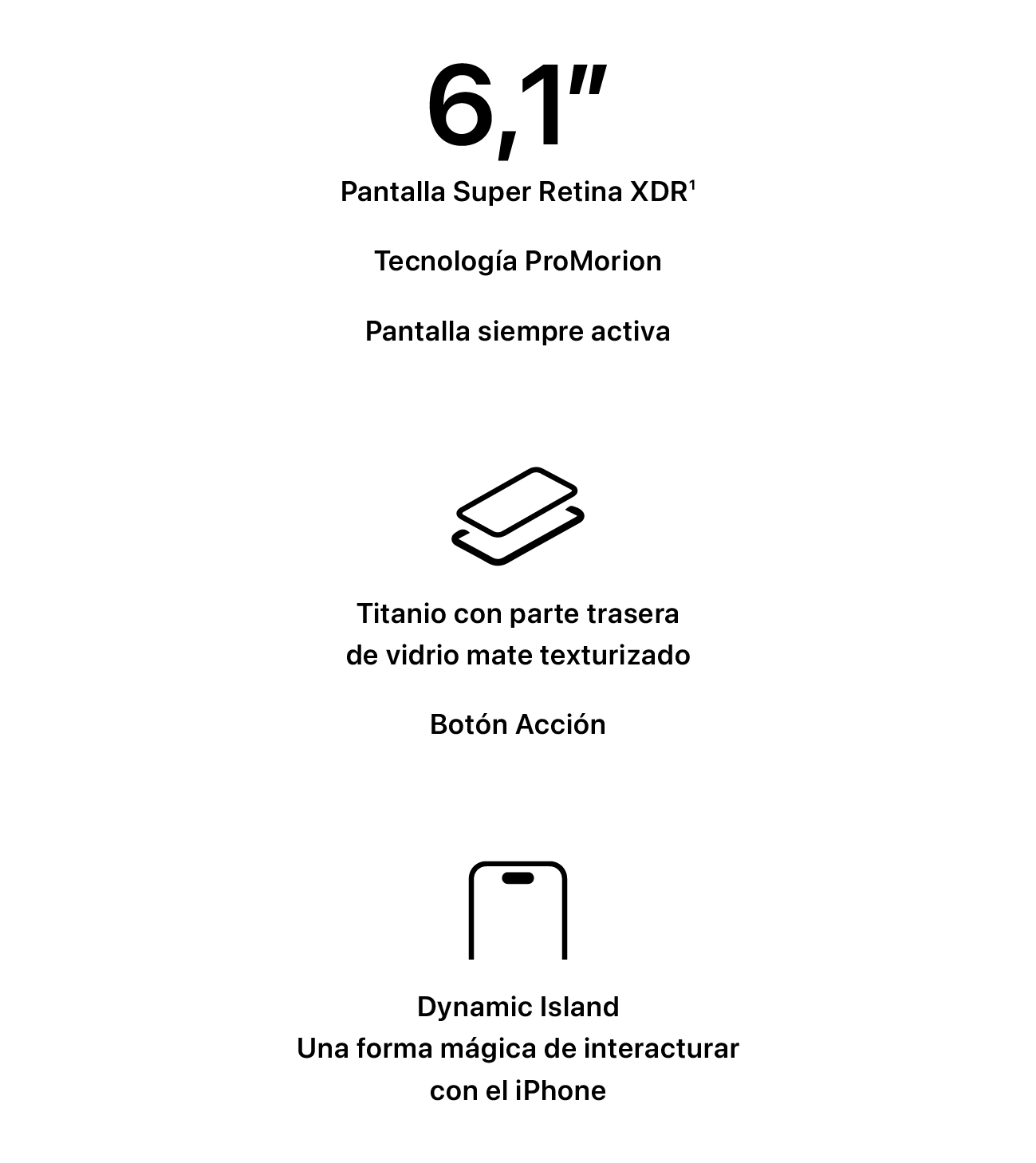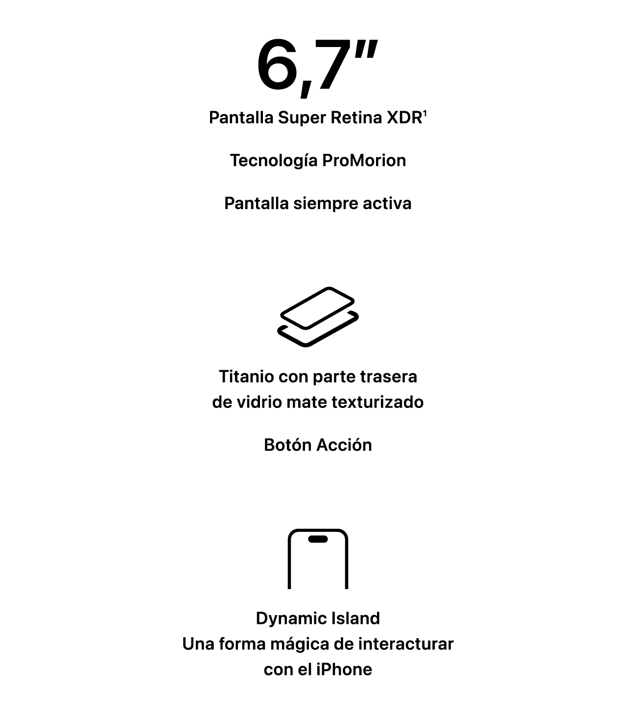 Diseñado para Apple Intelligence. Con un impresionante acabado en titanio. Control de Cámara. 4K a 120 f/s con Dolby Vision. Y el chip A18 Pro.