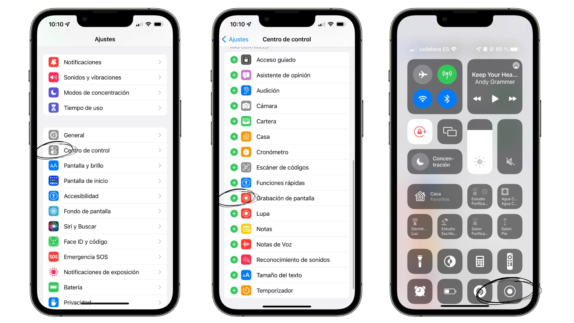 Añade la Grabación de pantalla desde el Centro de Control de tu iPhone.