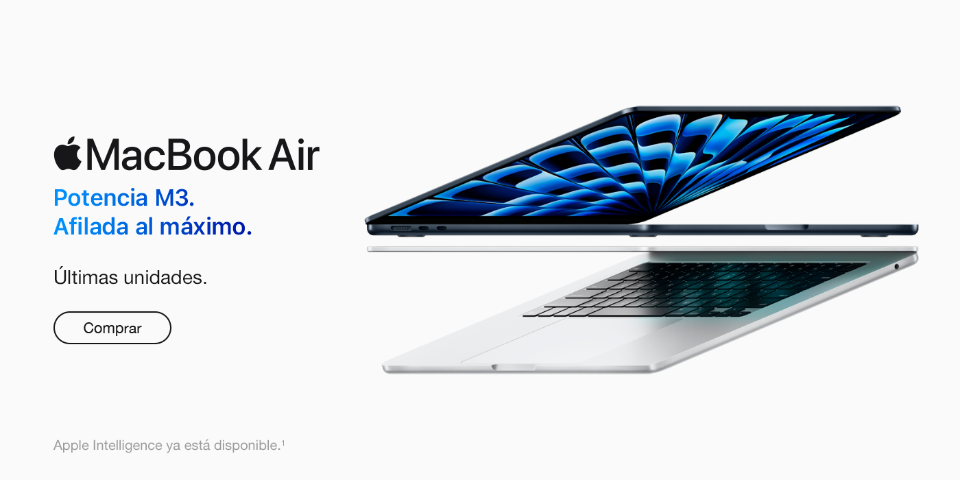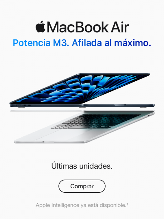 1. Apple Intelligence está disponible en versión beta. Algunas prestaciones no están disponibles en todas las regiones o idiomas. Consulta la disponibilidad de prestaciones e idiomas y los requisitos del sistema en support.apple.com/es-es/121115.