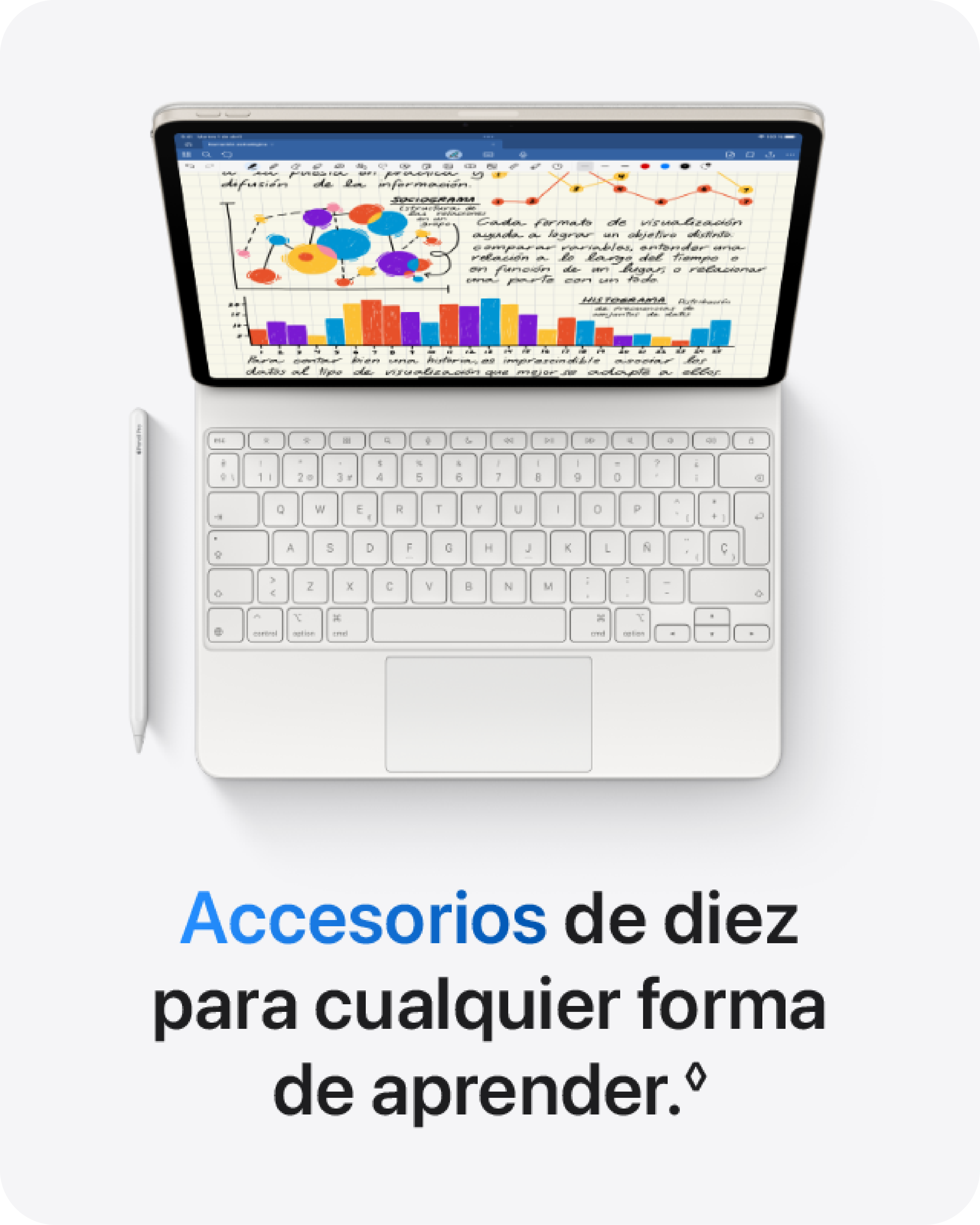 Redes móviles e inalámbricas: Se requiere un plan de datos. La velocidad puede variar según las condiciones del lugar y el operador. Ponte en contacto con tu operador y visita apple.com/ipad/cellular.