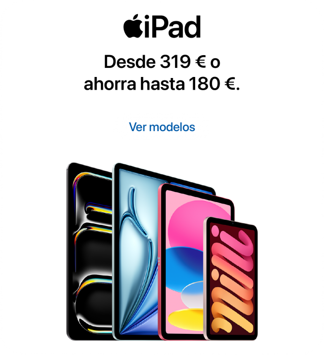 iPad. Desde 26,91 €/mes sin intereses TAE 0%2 en 12 meses.
