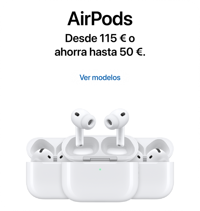 AirPods. Desde 19,17 €/mes sin intereses TAE 0%5 en 6 meses.