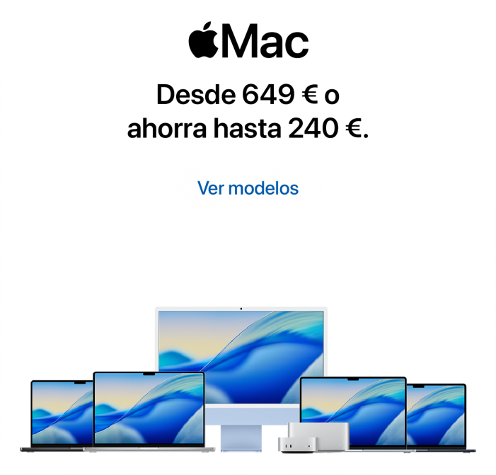 Mac. Desde 54,52 €/mes sin intereses TAE 0%3 en 12 meses.