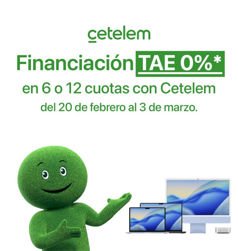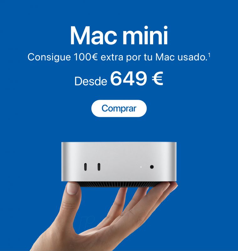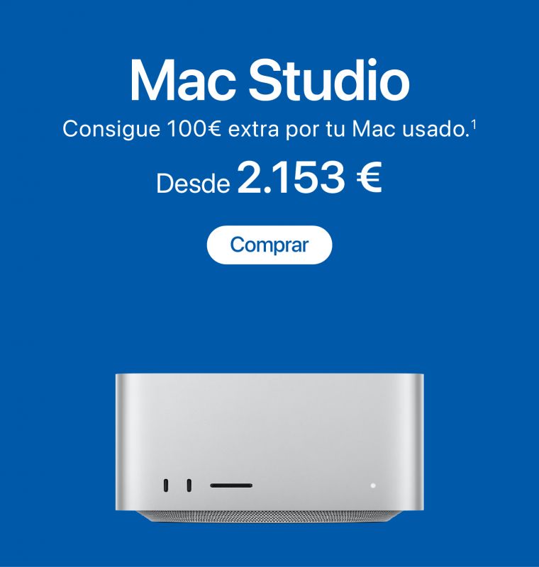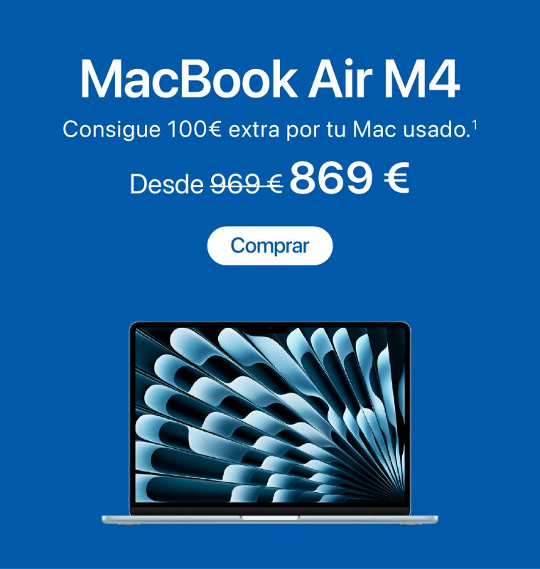1. Oferta Plan Renove Especial válida hasta el 3 de marzo de 2026. Para las compras de Mac consiste en un abono de 100€ extra en la valoración de un antiguo Mac valorado en más de 1€ por la compra de un nuevo Mac válido.