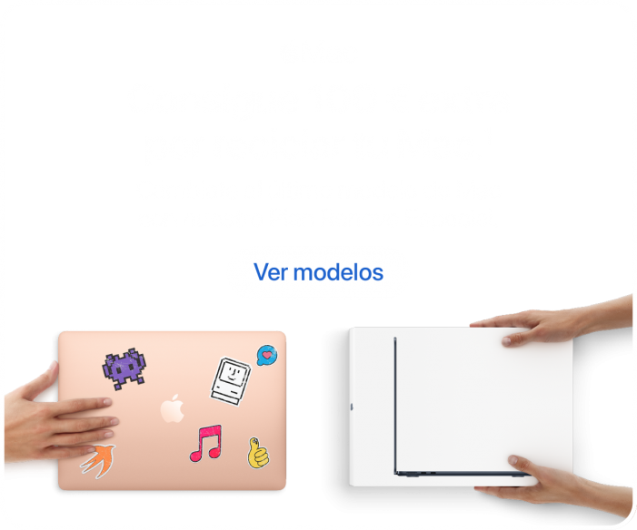 - Oferta Plan Renove Especial válida hasta el 3 de febrero de 2025. Para las compras de Mac consiste en un abono de 100€ extra en la valoración de un antiguo Mac por la compra de un nuevo Mac válido.