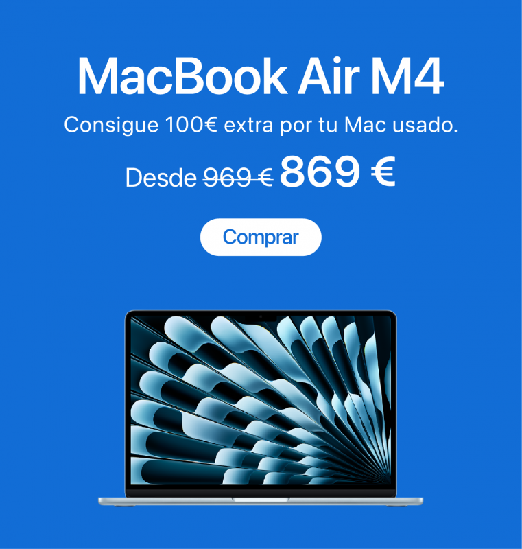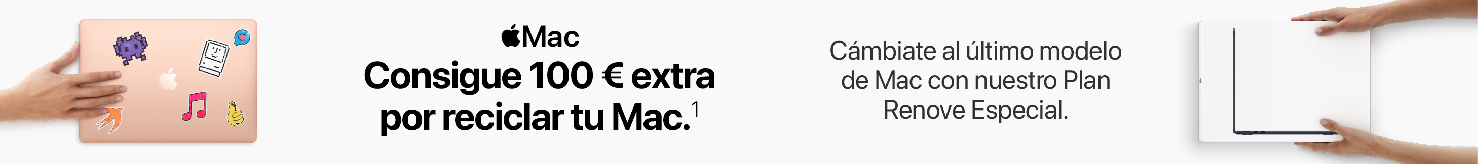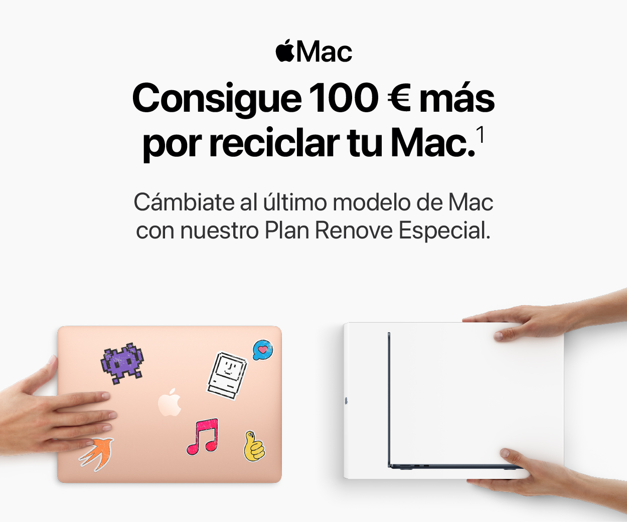 1. Oferta Plan Renove Especial válida hasta el 3 de febrero de 2025. Para las compras de Mac consiste en un abono de 100€ extra en la valoración de un antiguo Mac por la compra de un nuevo Mac válido.